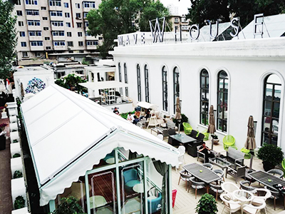 +富豪灰方管曲臂篷